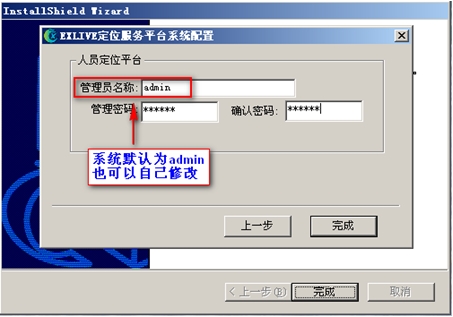 “管理员名称”和“管理密码”即为登录人员定位平台时,最高权限用户名(系统管理员)和密码。