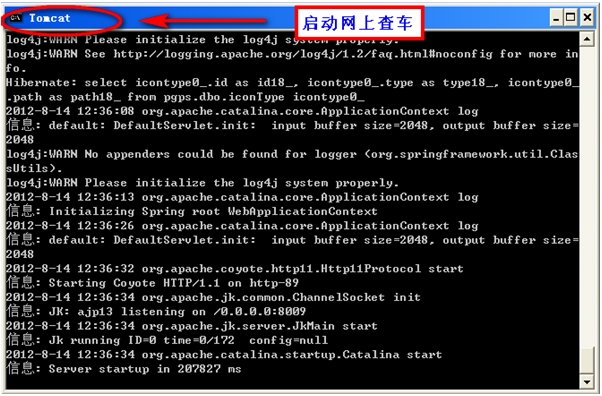 “启动Tomcat网上查车”界面