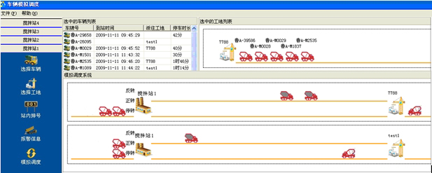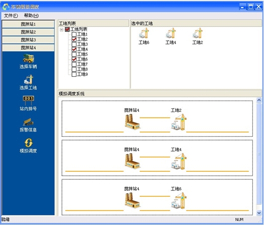 左侧列表显示"搅拌站"名称,即添加标注时的"发货方",根据调度要求,选择搅拌站进行调度。