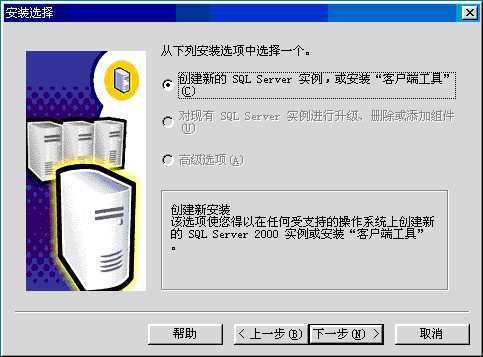 3. 将鼠标移至“安装数据库服务器(S)”单击左键。弹出如下界面: