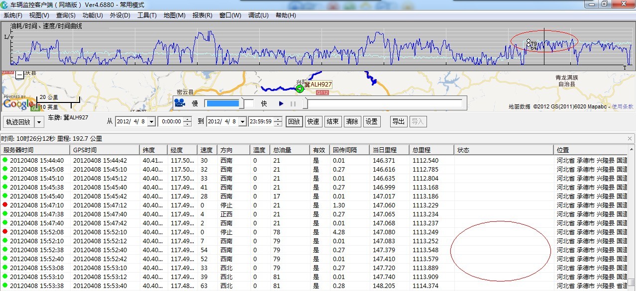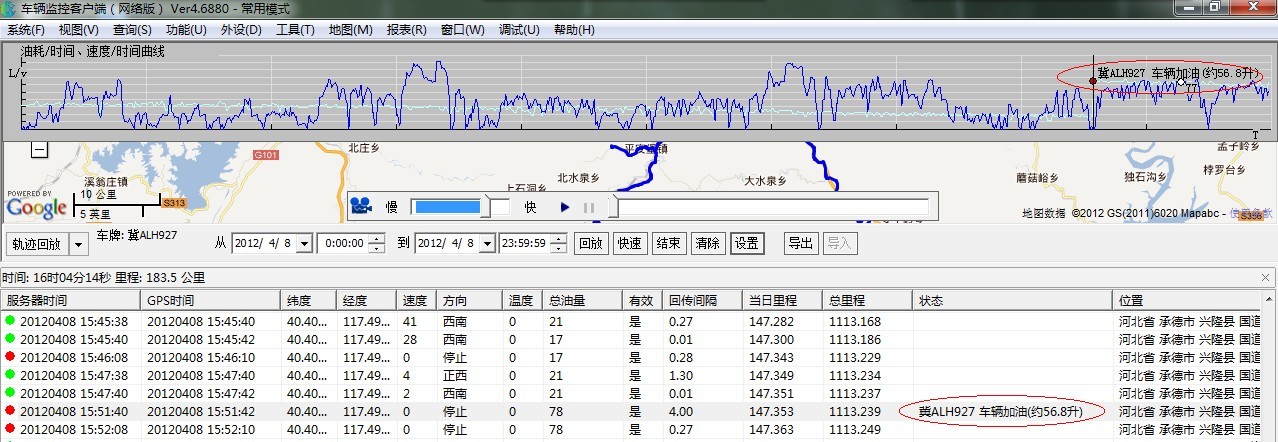 为什么曲线有显示加油,而客户端上没有加油记录?