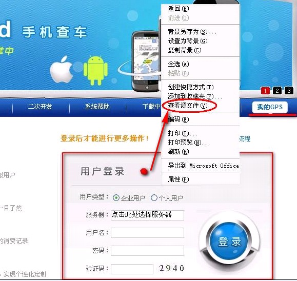2,在用户登陆框“用户登录”旁边空白处点击右键,选择“查看源文件”,如下图