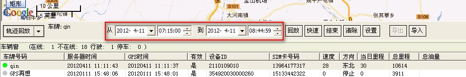在客户端轨迹回放面板,先选择需要的时间段就行轨迹回放,如下图
