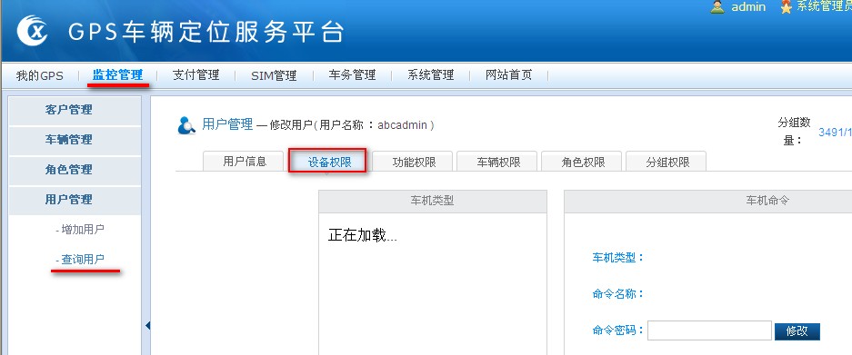 然后在监控管理à用户管理,增加或者修改用户的功能权限中,给此车机类型选中,该用户即拥有此车机类型权限。如下图: