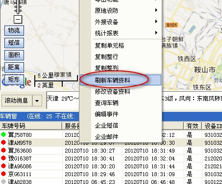在车辆栏车辆上点击右键,选择“刷新车辆资料”,如下图