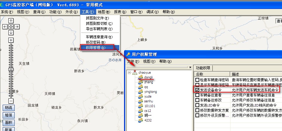 权限管理”,可以给普通用户设定是否可以发送设备命令的权限,如下图
