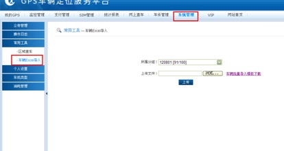 后台登陆管理员账号 系统管理--常用工具--车辆EXCEL导入,如下图: