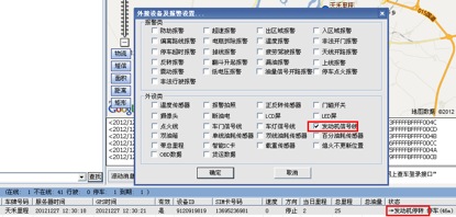 检查一下设备是不是接了发动机线,如果接了发动机线,需要在客户端外接设备及报警设置中选择发动机信号线,不用选择点火线。如下图所示: