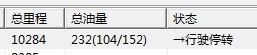 总油量例下,括号外的数字是实际的油量升数,括号里的第一组数字是模拟量1从十六进制转化为十进制的值,第二组数字是模拟量2从十六进制转化为十进制的值,104/152的比值可以知道传感器油浮子的位置,再根据软件的计算公式,可以算出油量为232升。 |