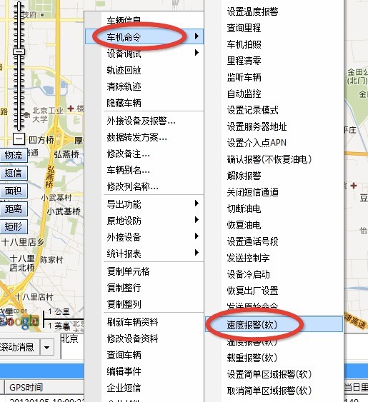 注意:当车辆超速后平台上并不产生超速报警消息,如需车机设备向平台上发超速报警,请设置硬件超速值,系统平台设置方法如下: