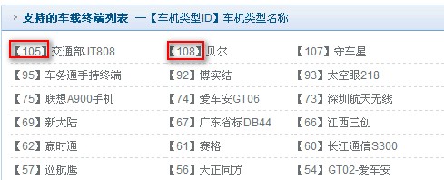 首页中,支持的车机列表,每个设备名称前面的序号就是设备类型代码,如下图: