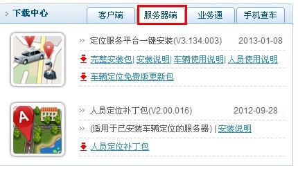 在主页下载中心选择“服务器端”项,“点击下载”。如下图示