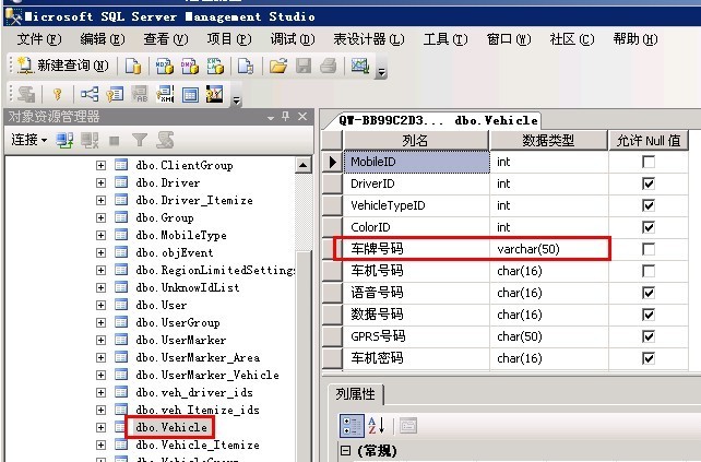 登录服务器的数据库 gserver_synth Vehicle这个表 右击设计 把车牌号码字段的数据类型改成varchar(50)