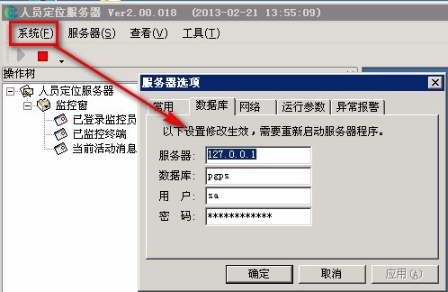 登陆人员定位后台程序,查看“统计报表”-->“位置报表”里边有没有数据,如果没有就是手机端没有把位置信息上传给人员定位服务器(pserver),登陆服务器查看人员定位服务器(pserver)数据库连接参数是否是pgps这个数据库,方法如下图: