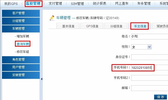 可以!先在后台查询这辆车,然后修改车辆信息,在车主信息哪里填写需要接收短信的手机号码,如下图所示