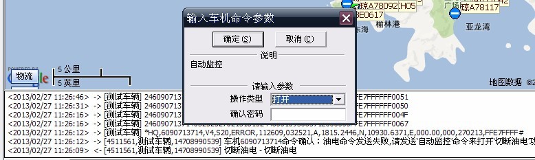 天禾有一款车机在下发断油电命令的之前需要发送打开自动监控命令,打开之后才可以 下发断油电命令 断油电命令有密码(yaozhuyi)