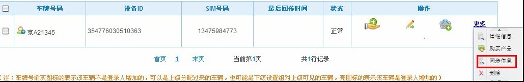 B. 如果个人帐号都登录不了,后台有车辆信息,就是客户端不显示,造成这样的问题,是由于分服务器在添加车辆的时候网络不稳定,数据没有添加到自己服务器的数据库里面,针对于这个问题,我们这边做了一个信息同步的功能,就是说,只要数据在后台可以查询车辆查到信息,点击更多有一个“同步信息”