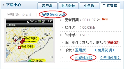 第一步:下载安装安卓手机查车安装包 >>>> 下载“手机查车安卓(Android)版”软件 登录网站www.exlive.cn,在“下载中心->手机查车”栏目中下载手机查车安卓版,如图1: