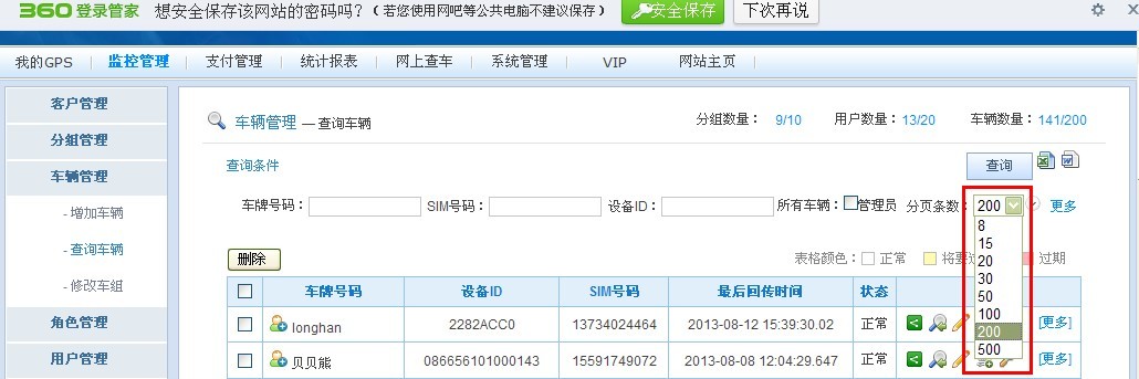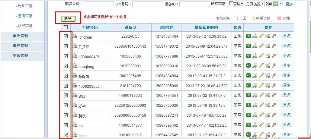 勾选之后此页面就会显示自己选择的设备个数,然后批量选择过期设备进行删除 如下图: