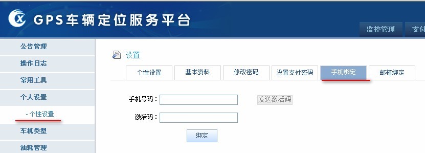 A.从客户端“报表”菜单进入后台管理,在“系统设置”,个人设置-》个性设置—》手机绑定来绑定手机号码