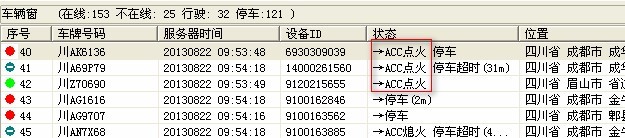 怠速:是指车辆处于“停车且点火状态”,设备安装时,须接点火线,并且在客户端状态栏能看到点熄火状态,如下图 怠速:是指车辆处于“停车且点火状态”,设备安装时,须接点火线,并且在客户端状态栏能看到点熄火状态,如下图
