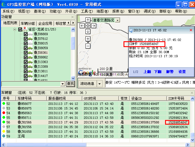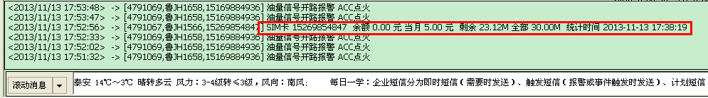 SIM卡余额查询详细结果会在客户端弹出框弹出显示出来,如图3