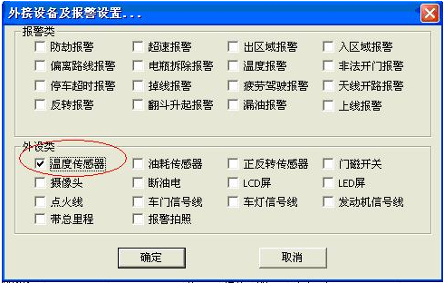2)客户端 外接设备及报警设置”中给“温度传感器”打勾选中
