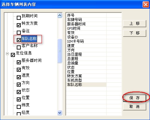 1,在客户端下方任意一辆车上点击右键,“车辆信息”的弹出框中,将“车队名称”打勾选中 相关附件如下: ![]() 2,在客户端下方的车辆列表中,就可以看到“车队名称”列了 相关附件如下: ![]() |