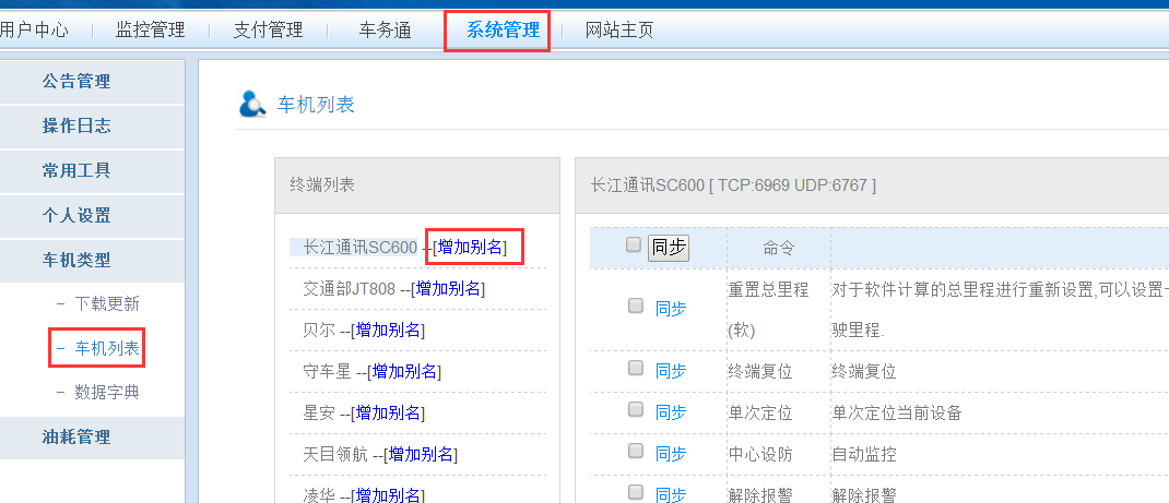 用系统管理员的账号登录【后台管理】——系统列表——车机列表——选择需要修改的设备类型,点击【增加别名】即可