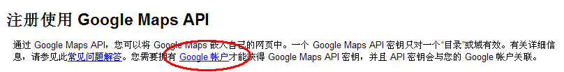 先登录这个链接(google地图),创建一个账号: http://code.google.com/intl/zh-CN/apis/maps/signup.html