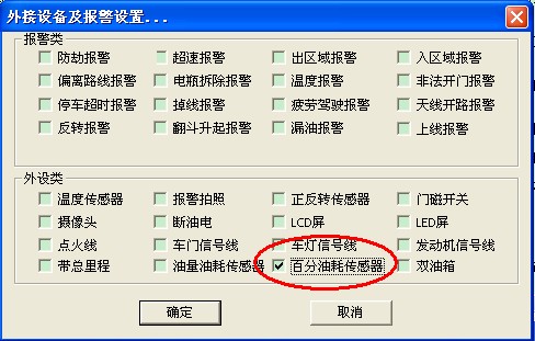 百分油耗传感器是一种不用在后台标定的油耗传感器,只需要在客户端外设里选择“百分油耗传感器“即可。