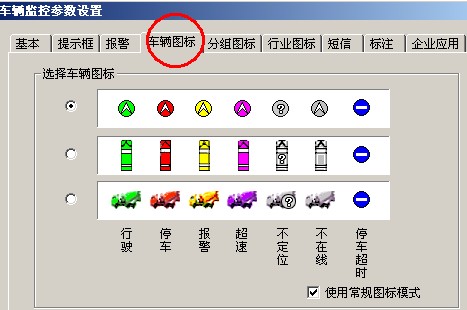 客户端车辆窗中的不同颜色的图标都代表什么意思?