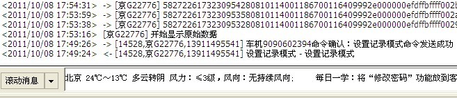 ---![]() 在客户端按F2可以查看发送成功与否,并在客户端菜单中“调试”调出“显示原始数据” ![]() 如果原始数据以58开头的说明是正在上传X模式数据,如果是59说明是正在上传Y模式数据。 然后还需要在客户端外设中勾选“带总里程”,在客户端的“车辆窗”中选一辆车点击右键,“车机命令”-->“外接设备及报警...”,勾选“带总里程”,这样软件计算的车机行驶里程是从硬件里取的里程,硬件本身是1秒钟累加一次,所得结果与真实里程非常接近。 ![]() 如果X模式没有设置成功,但勾选了“带总里程”,会造成从硬件里取不到总里程,客户端回放轨迹及报表中总里程一直为0。所以设置成了其它模式,如Y模式,一定要把“带总里程”的勾选去掉。 |