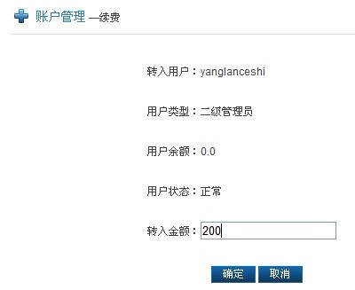 ![]() 选择相应的用户续费,点击“续费”,输入要转给用户的金额, ![]() 点击“确定”,输入支付密码 ![]() 操作成功后会显示如下图 |