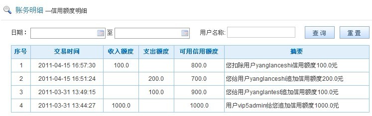 新平台中支付管理-->帐务明细-->信用额度明细如何使用?