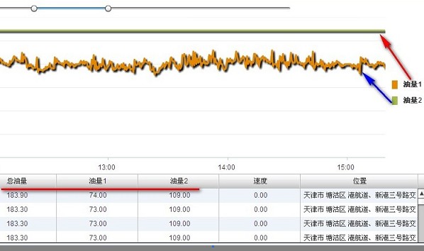 后台油耗报表,能显示两个油箱分别的油量以及总油量的.
