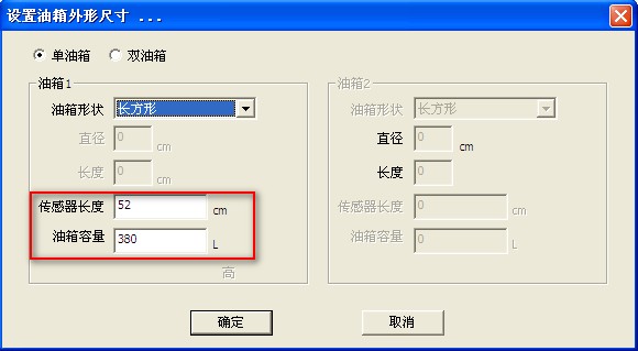 先要填写下传感器的长度,然后再填写油箱容积。