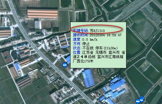 鼠标放在车辆图标上,即可出现浮动框,看到车牌号码,车辆状态,位置等信息,如下图